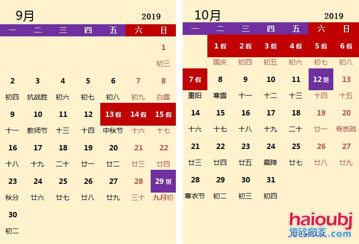 2018年已經(jīng)接近尾聲,即將迎來的將是全新的2019年,很多朋友最關(guān)心的就是上班與放假,調(diào)休等事宜,今天昆明搬家公司小編給全國的親們收集整理了2019年全年放假安排表,伙伴們可以合理的安排自己的出行時間,無論你是需要搬家、拜訪領(lǐng)導、出遠門、旅游等。提前安排自己的行程準沒錯。下邊是搬家公司小編整理的全年節(jié)假日休息及調(diào)休放假安排表,留著后邊用得到!